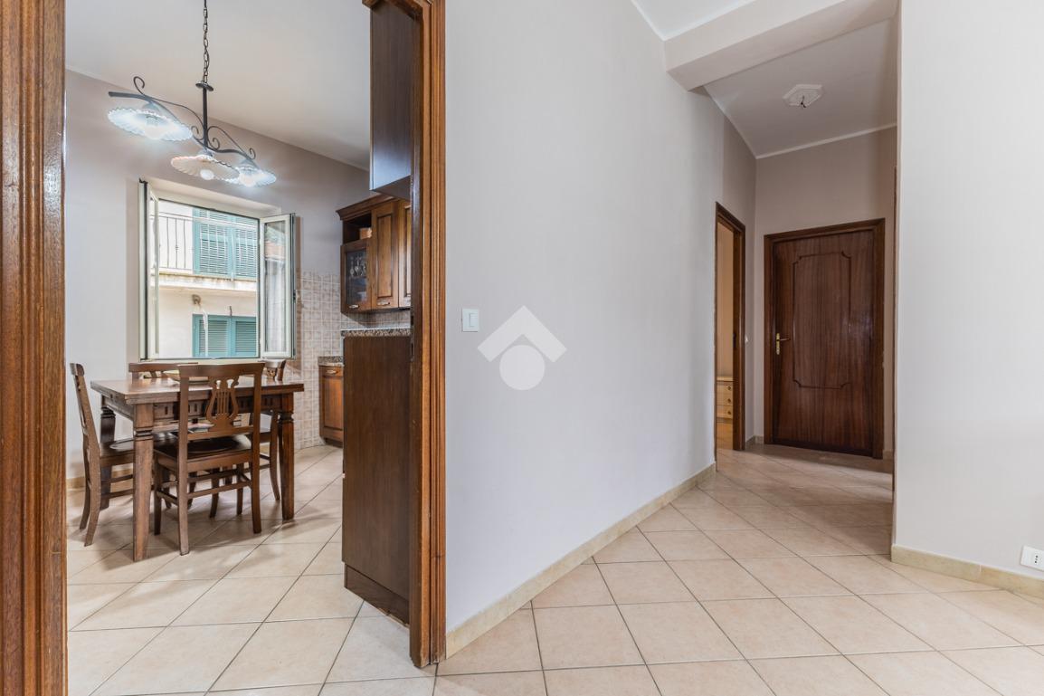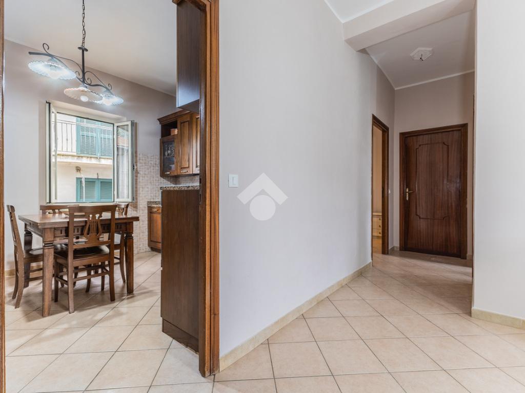 Entrando nell'abitazione veniamo accolti dalla zona giorno, caratterizzata da una comoda cucina abitabile con camino affiancata dal bagno con doccia e da uno spazioso salone con balcone. Dal balcone è possibile godere di una vista panoramica che consente di scorgere anche Palazzo Farnese.