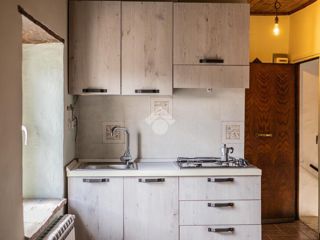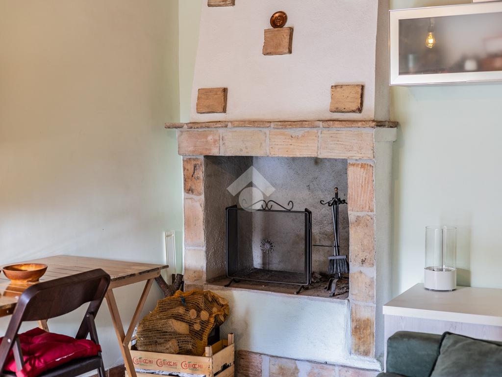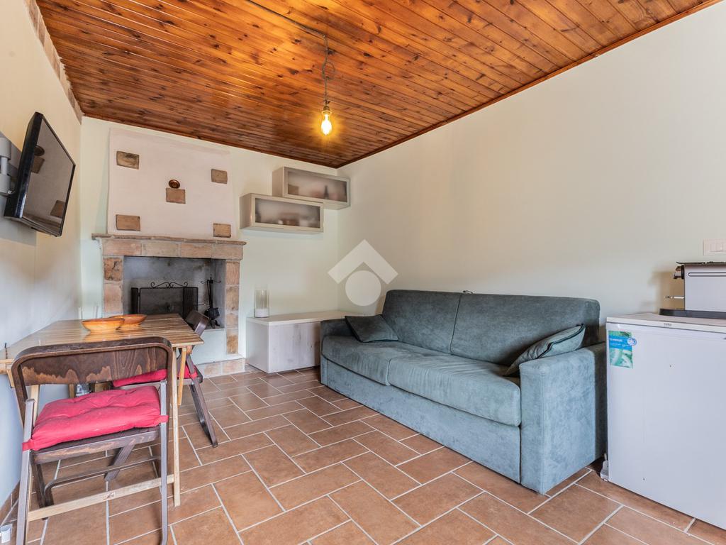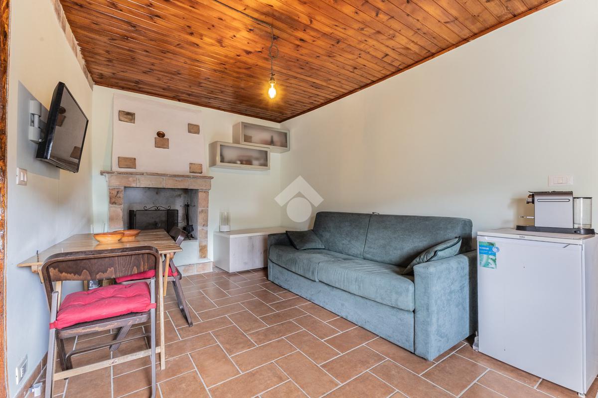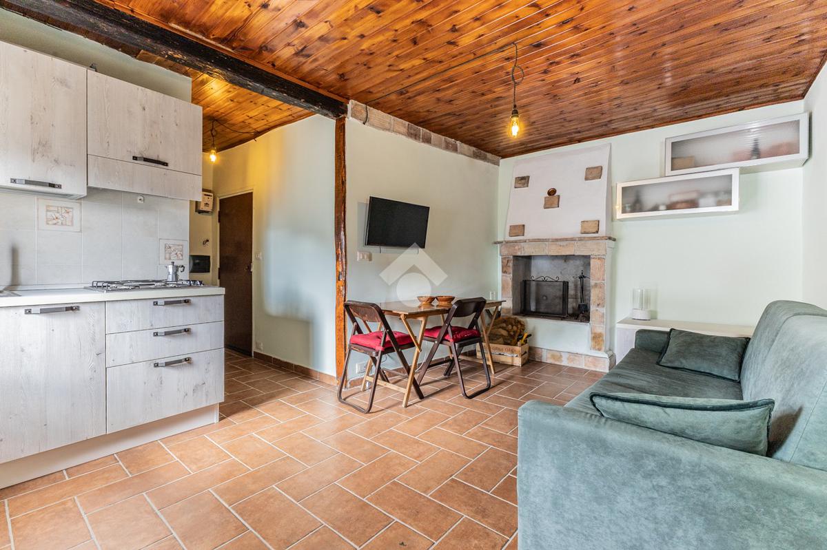 Situato al primo piano, l'immobile si compone di un luminoso soggiorno con angolo cottura e caratteristico camino. Completa la proprietà una camera da letto, attualmente adibita a studio, e un bagno finestrato con doccia.