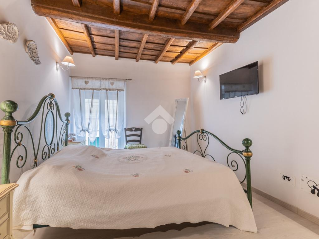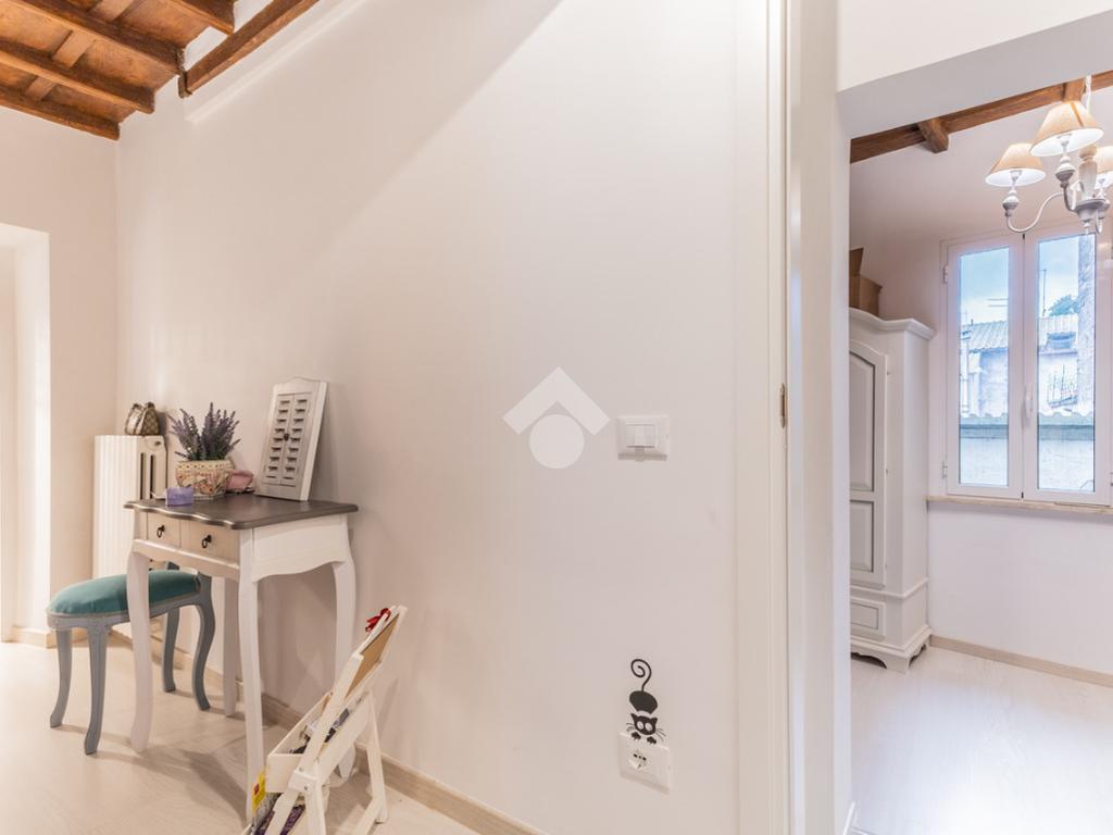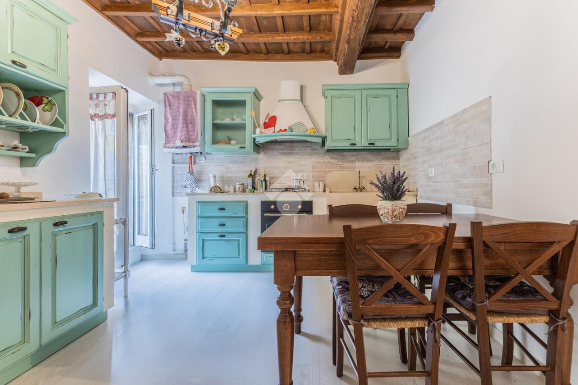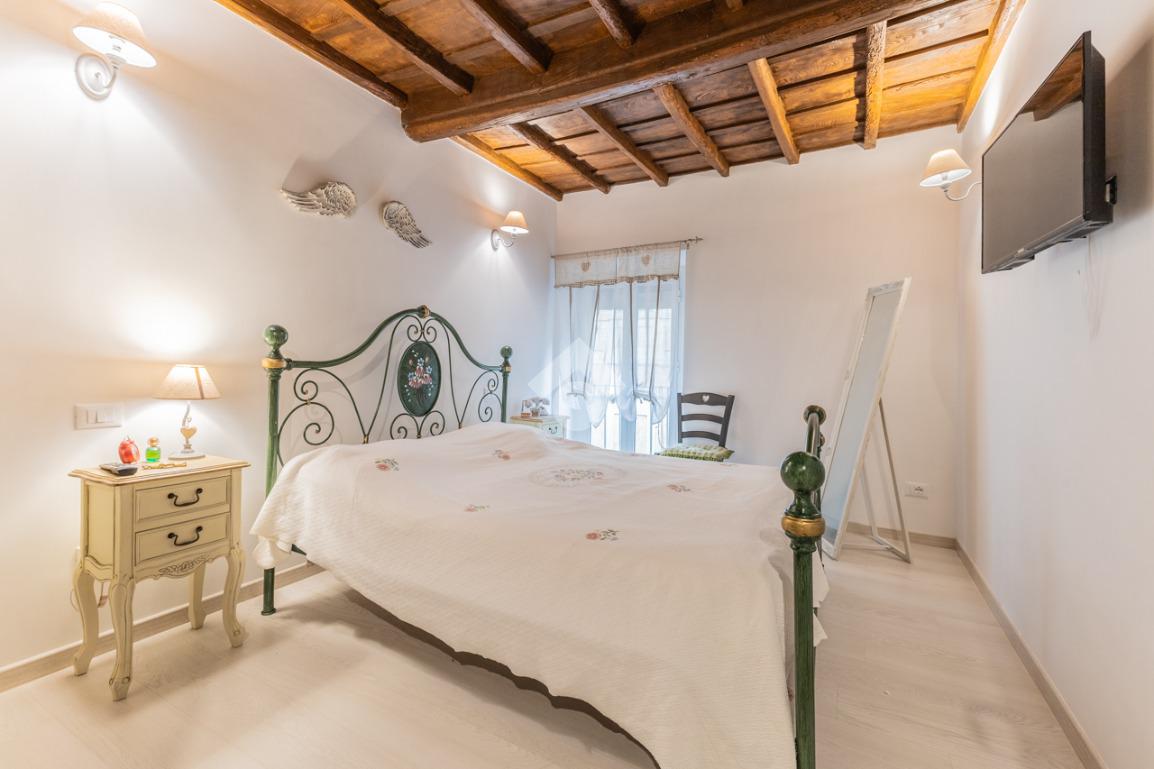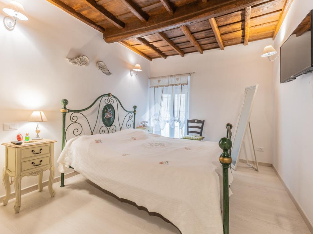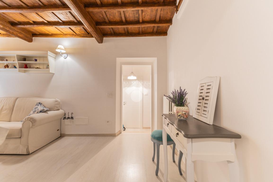 L'appartamento internamente si dispone tutto su un livello e gli ambienti principali sono rifiniti con caratteristico soffitto con travi a vista.