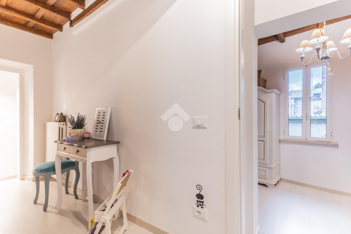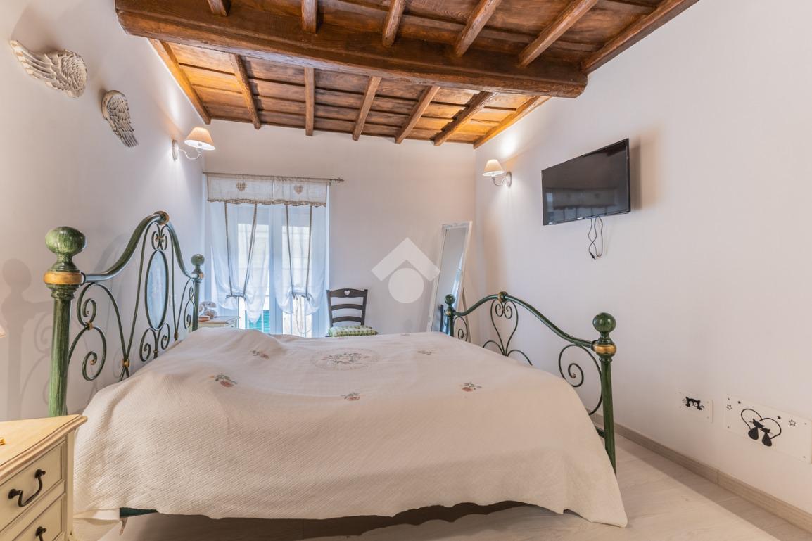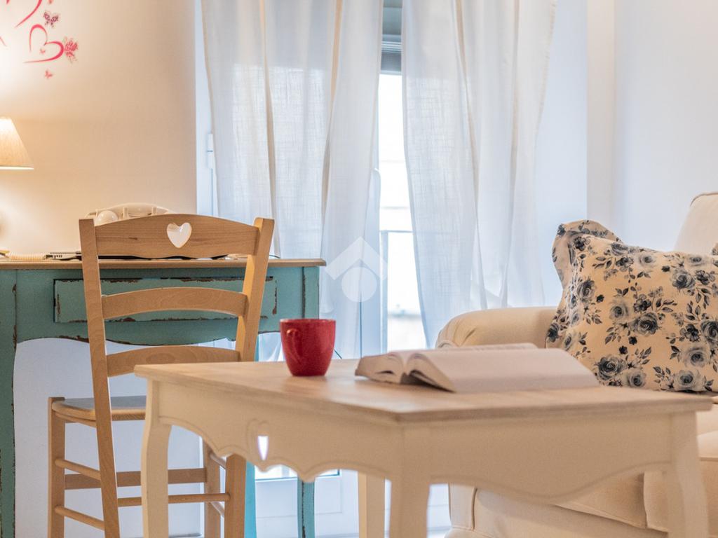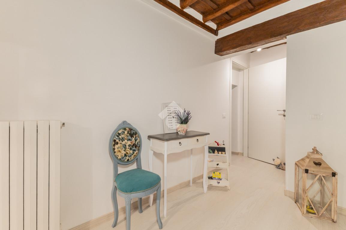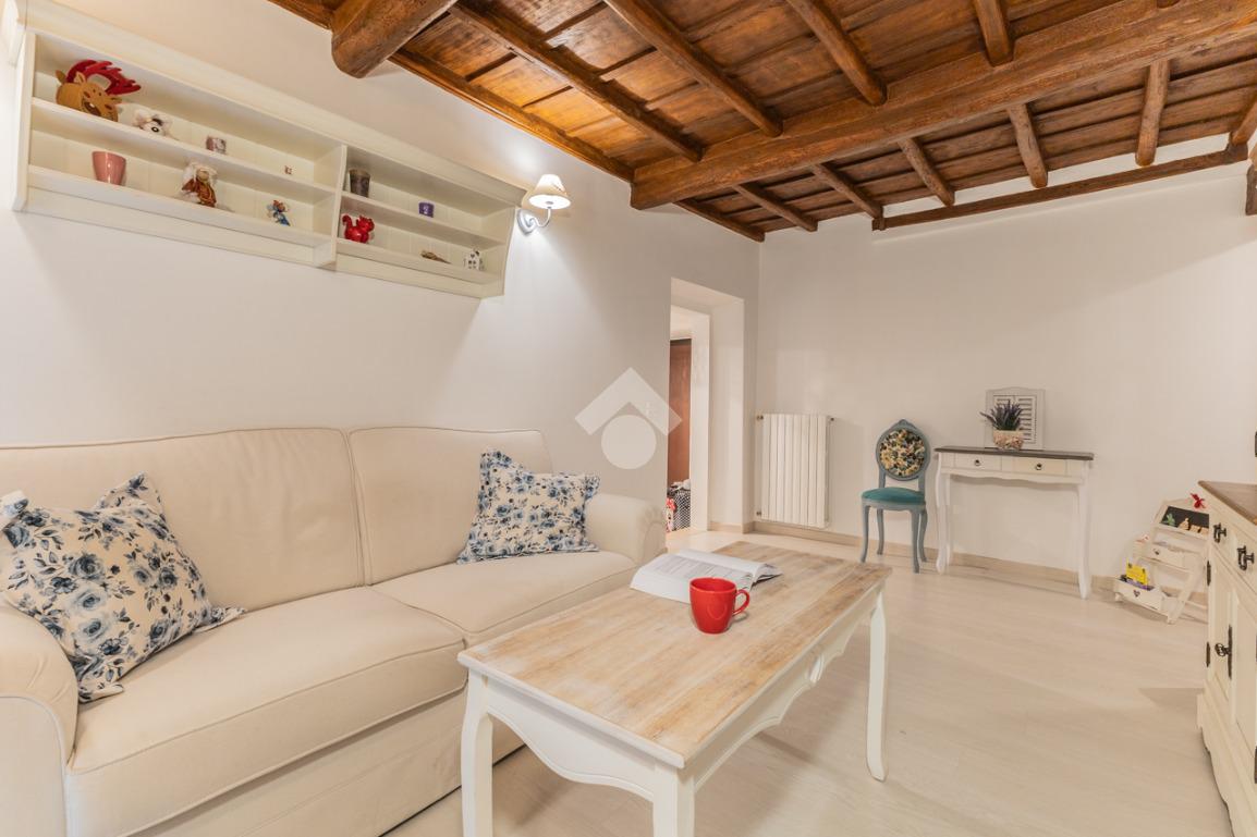 L'appartamento internamente si dispone tutto su un livello e gli ambienti principali sono rifiniti con caratteristico soffitto con travi a vista.