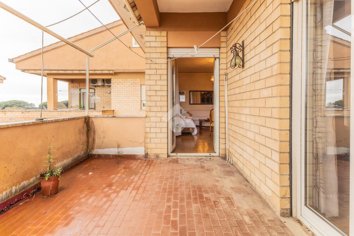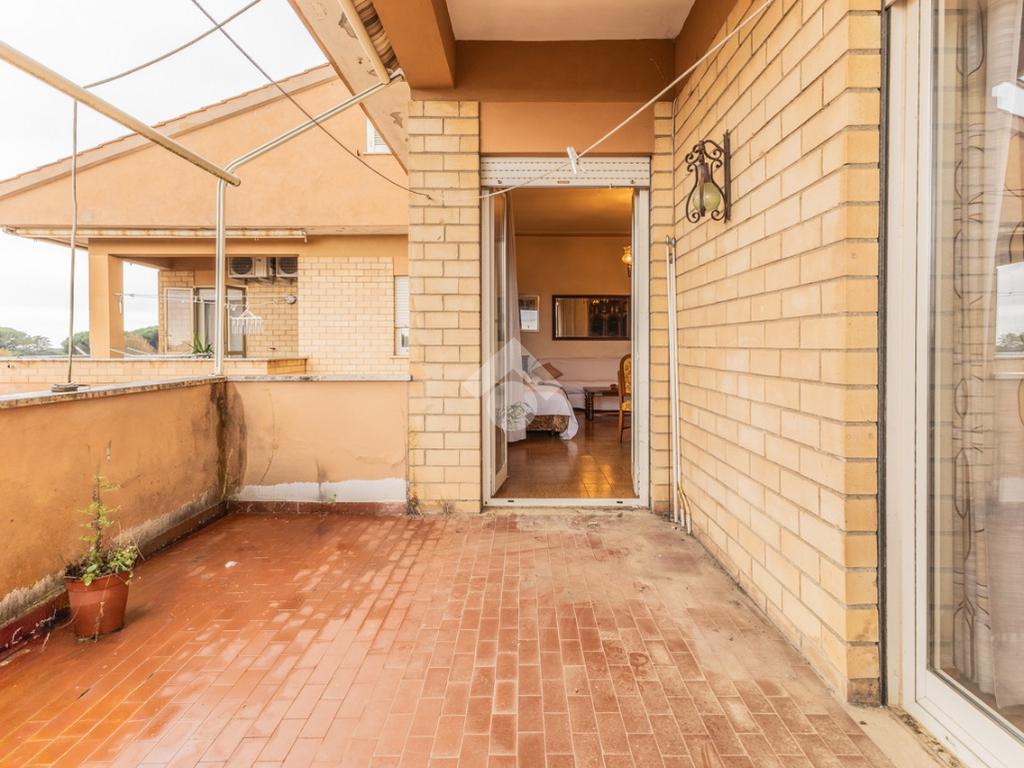 Internamente l'appartamento si compone di: salone con uscita sul terrazzo, cucina abitabile, bagno con vasca e una zona notte caratterizzata da camera matrimoniale, una cameretta con balcone ed uno studio con camino.