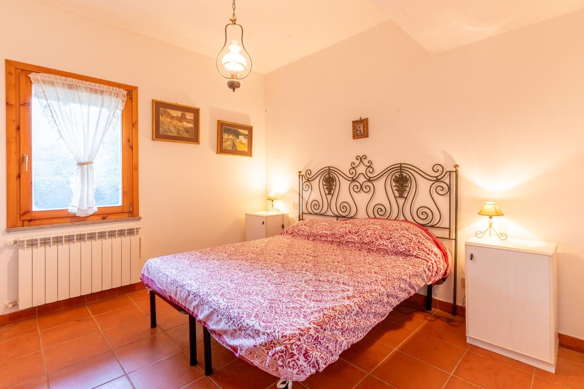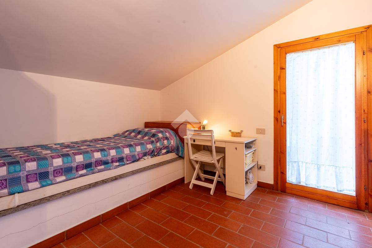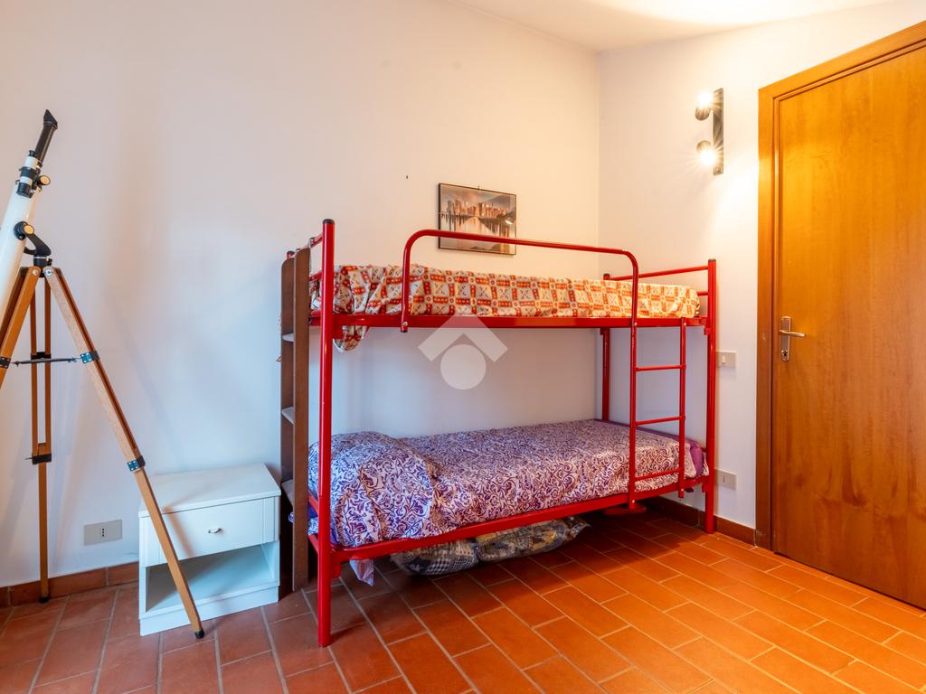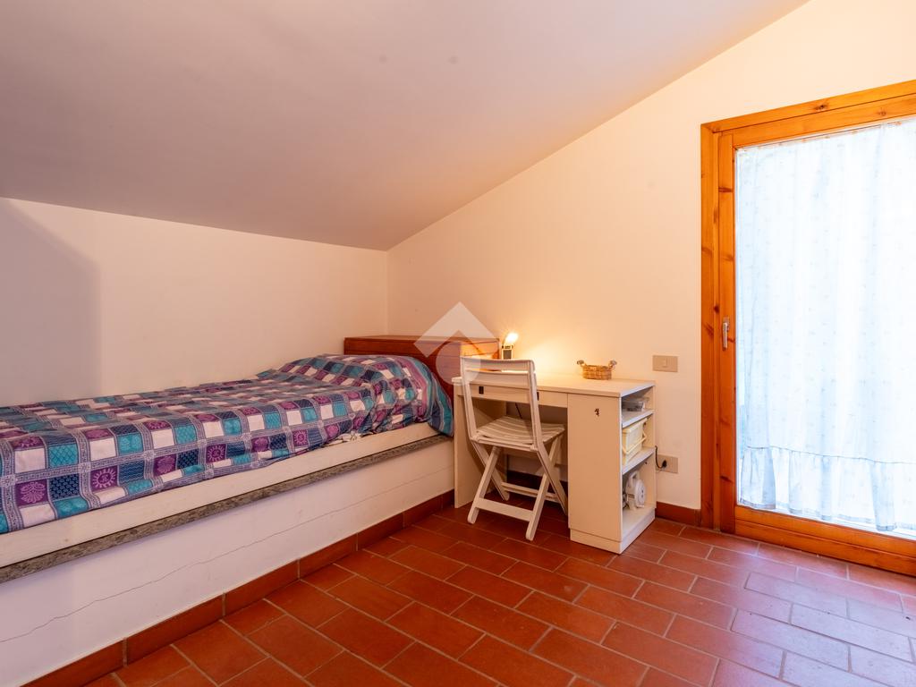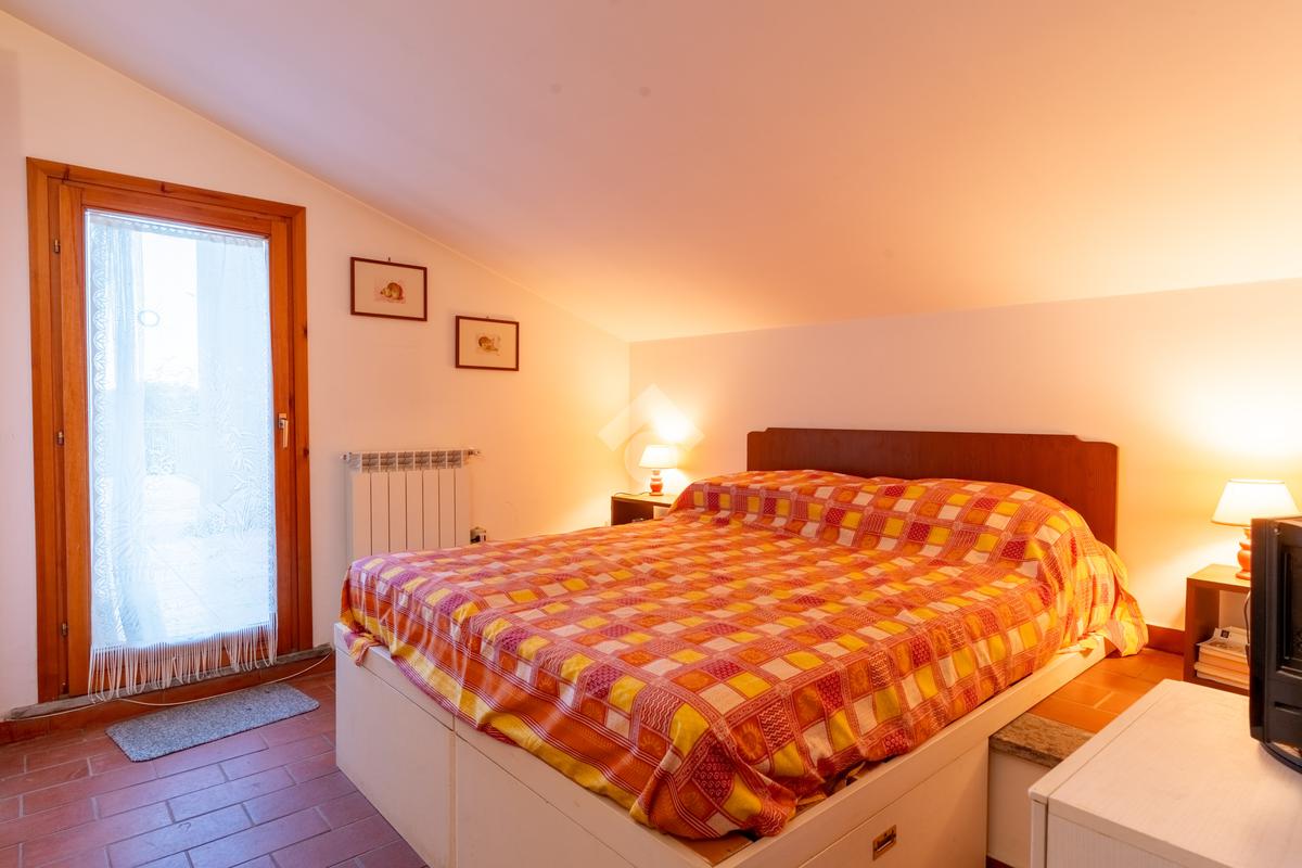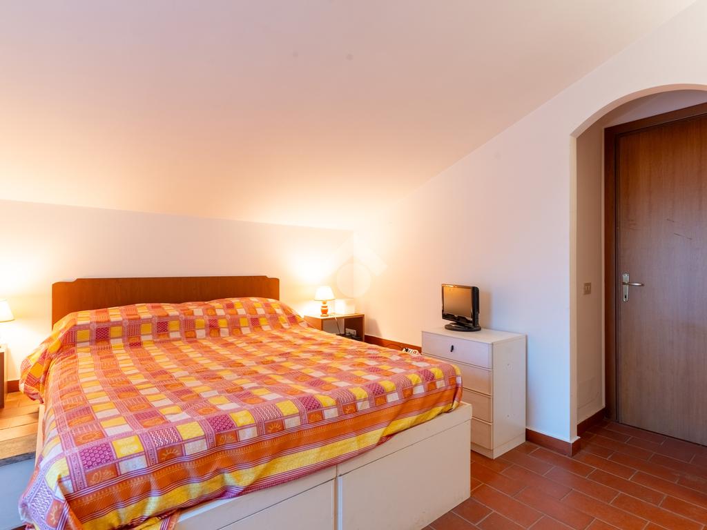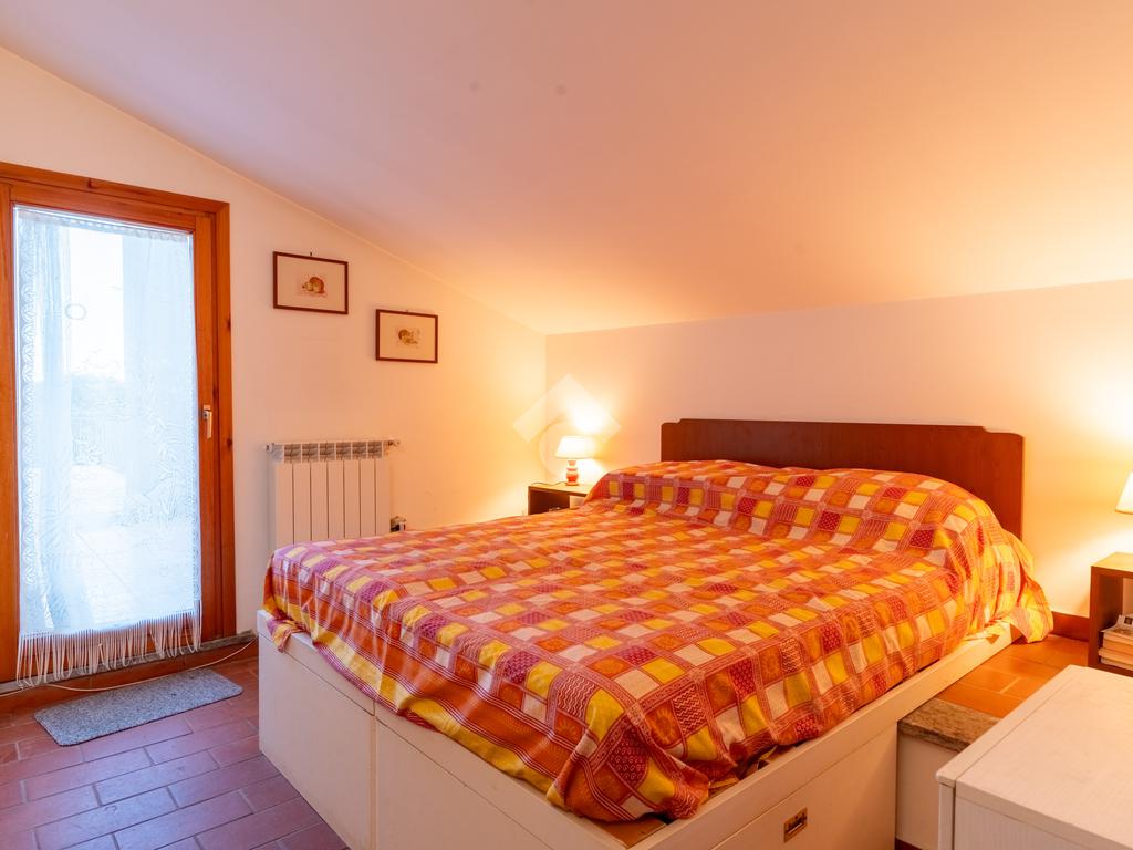 Il piano superiore, mansardato, ospita due camere da letto e un secondo bagno con doccia, con uscita diretta sulla terrazza dove è collocata la piscina, ideale per momenti di relax e convivialità.