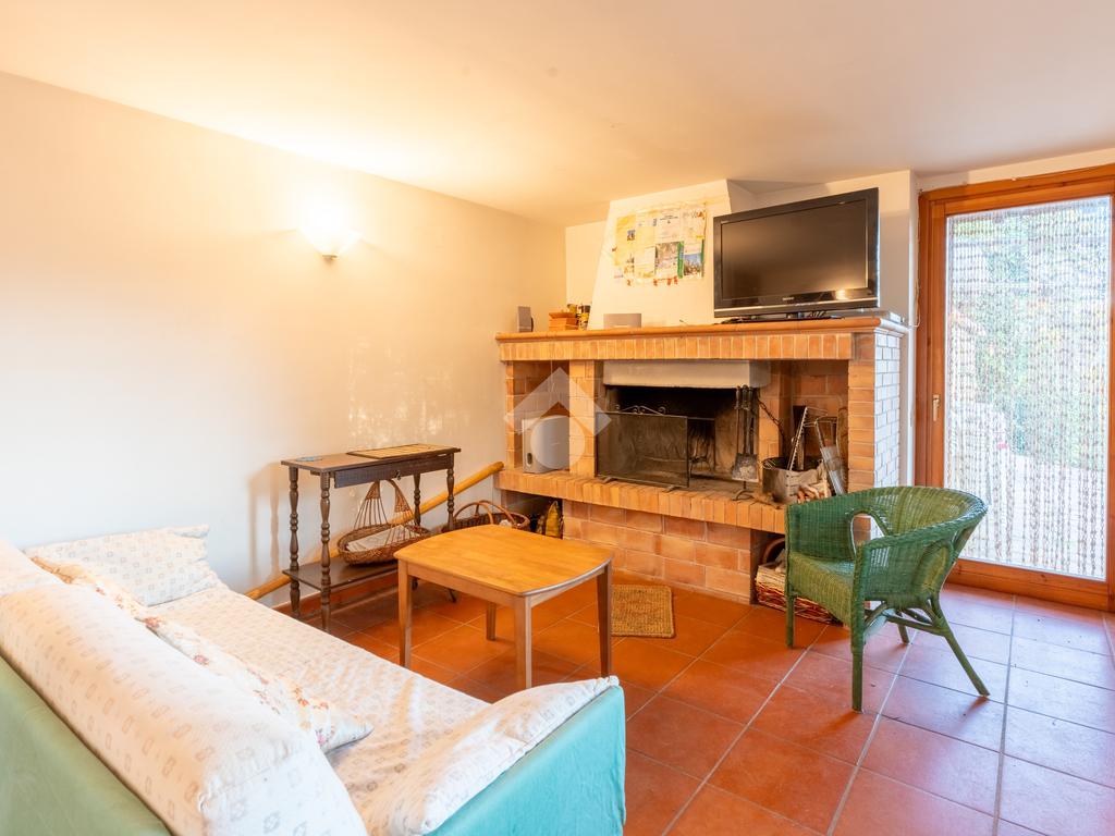 Al piano terra troviamo un accogliente salone con camino, cucinotto, camera da letto e bagno.
