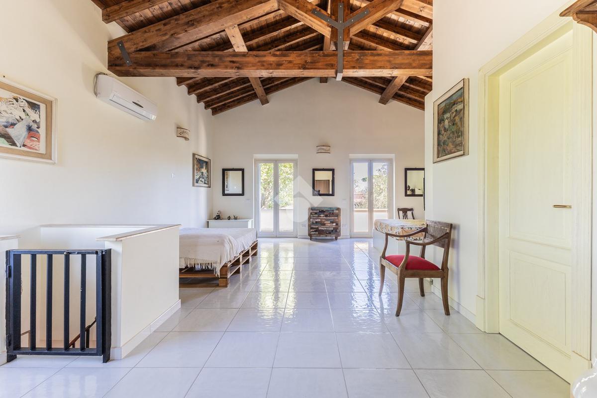 Il piano superiore ospita un loft rifinito con elegante soffitto in travi a vista, servito dal proprio bagno con doccia e dotato anche del suo ingresso indipendente. Il loft consente inoltre l'uscita su un terrazzo perimetrale che regala una suggestiva vista panoramica verso i borghi di Ronciglione e Caprarola ed al contempo sul monte Soratte che si staglia all'orizzonte.