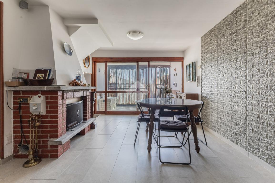 Un portico all'ingresso, ideale per trascorrere momenti di quiete, ci introduce negli spazi di casa. Entrando veniamo accolti da un luminoso salone con camino, affiancato dalla comoda cucina abitabile, funzionale e ben organizzata. Al primo piano della villetta si colloca la zona notte, caratterizzata da tre camere ed un bagno con doccia. In particolare due camere matrimoniali (di cui la principale con soppalco sfruttabile e terrazzino) ed una cameretta mansardata.